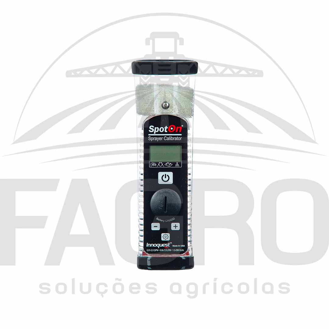 O Calibrador SC-2 da SpotOn é o mais conhecido e confiável do mercado. Seu display simples e completo torna seu uso fácil e de configuração intuitiva, com poucos passos. Com ele, é possível verificar com rapidez e precisão a vazão de até 2 galões por minuto (7,5 l/min) dos seus bicos de pulverização. Informando o espaçamento e velocidade do pulverizador, você terá a taxa de aplicação por hectare instantaneamente no momento da medição.