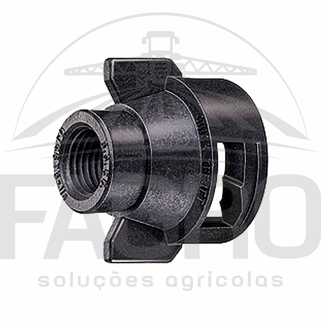 A capa de engate rápido Quick TeeJet QJ4676-1/4-NYR permite o uso de bicos padrão de 1/4". Pode ser usado para montagem de manômetro na ponta do bico. (B) = BSPT.