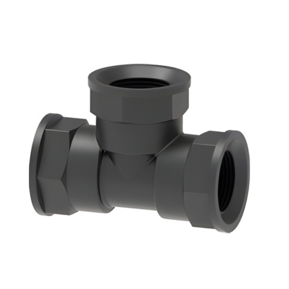 Seu design em T fêmea-fêmea-fêmea (G1½) permite conexões rápidas e robustas entre três linhas, mantendo o fluxo equilibrado e reduzindo riscos de vazamento.