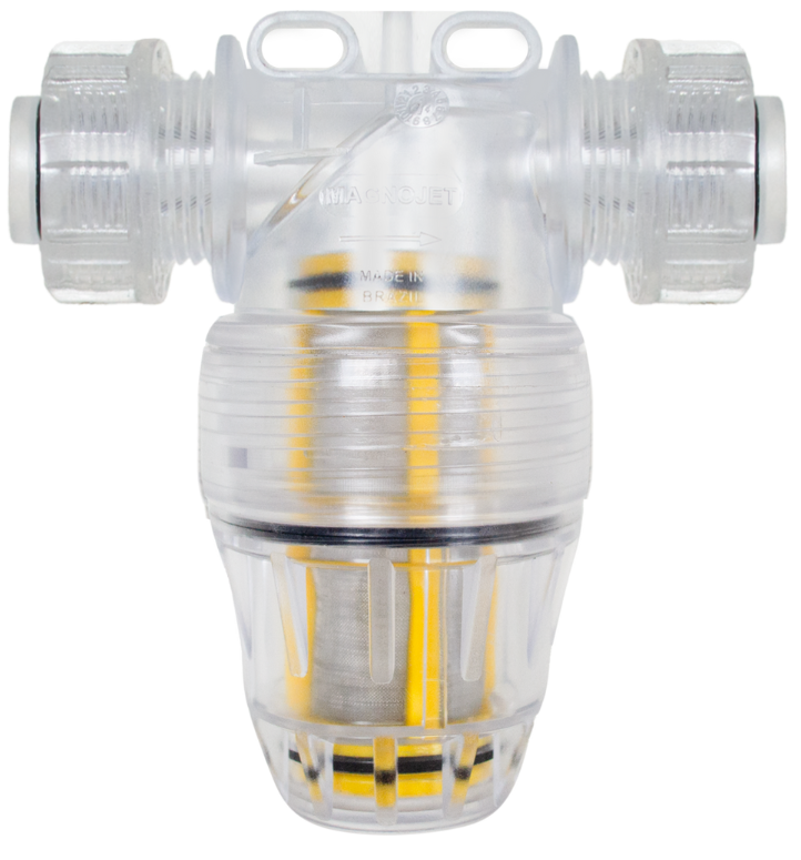 O filtro de linha Magnojet M700 é um componente essencial para sistemas de pulverização agrícola, projetado para reter partículas e impurezas da calda, além de permitir visualização direta do fluxo graças ao seu copo transparente.