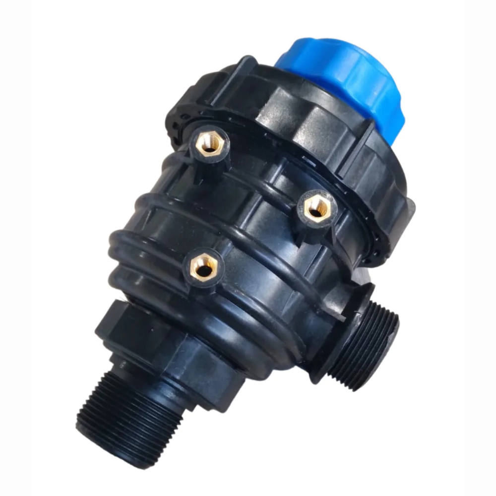 Construído em polímero de engenharia reforçado, o filtro oferece alta resistência química e mecânica, sendo ideal para trabalho com defensivos, fertilizantes líquidos e misturas concentradas.