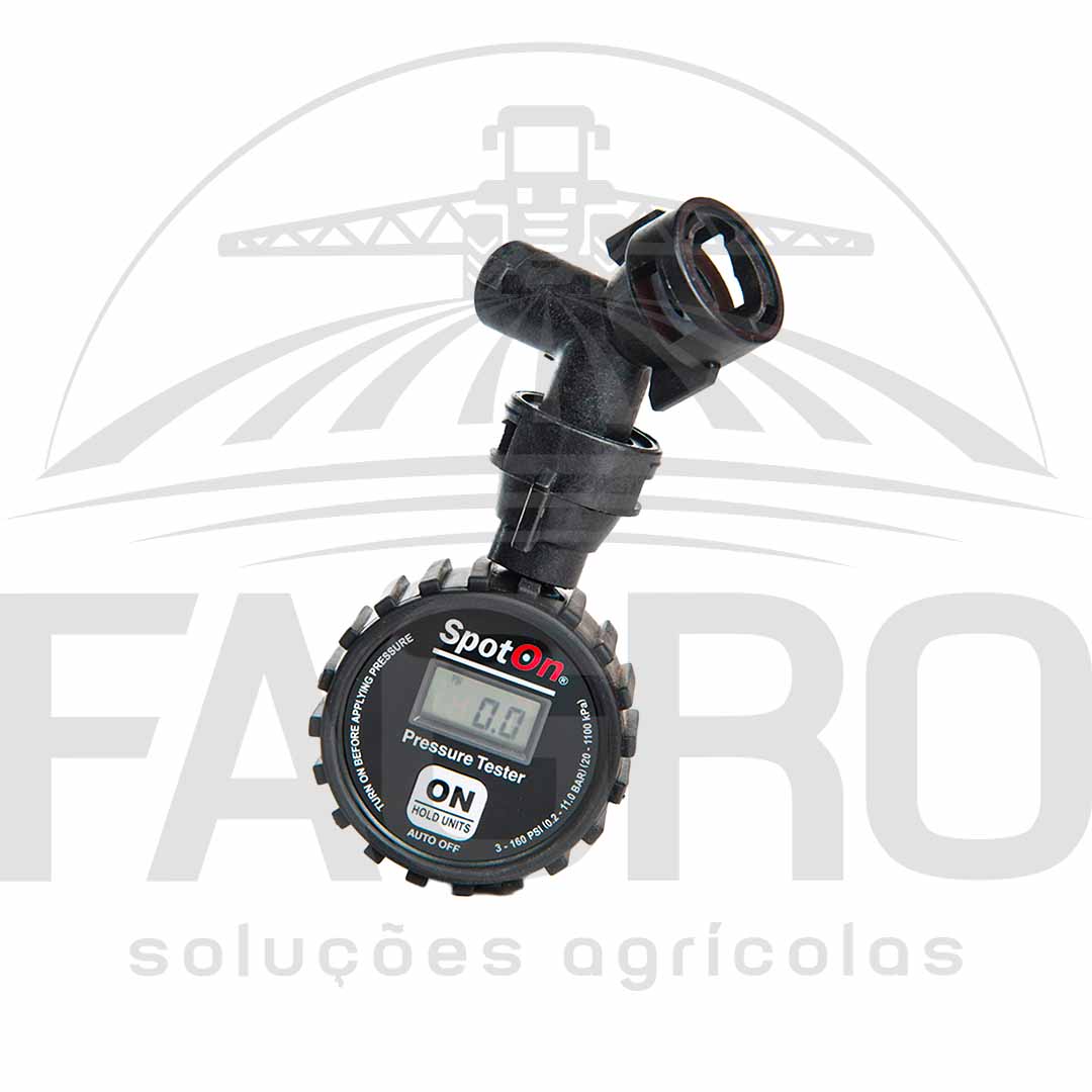 Manômetro Digital, acompanha um "Y" para montagem na saída do porta-bicos, proporcionando precisão e evitando erros de medição quando comparados com versões convencionais, por conta de sua localização bem próxima ao bico. Tem diferentes unidades de medida, como PSI, BAR e kPa.