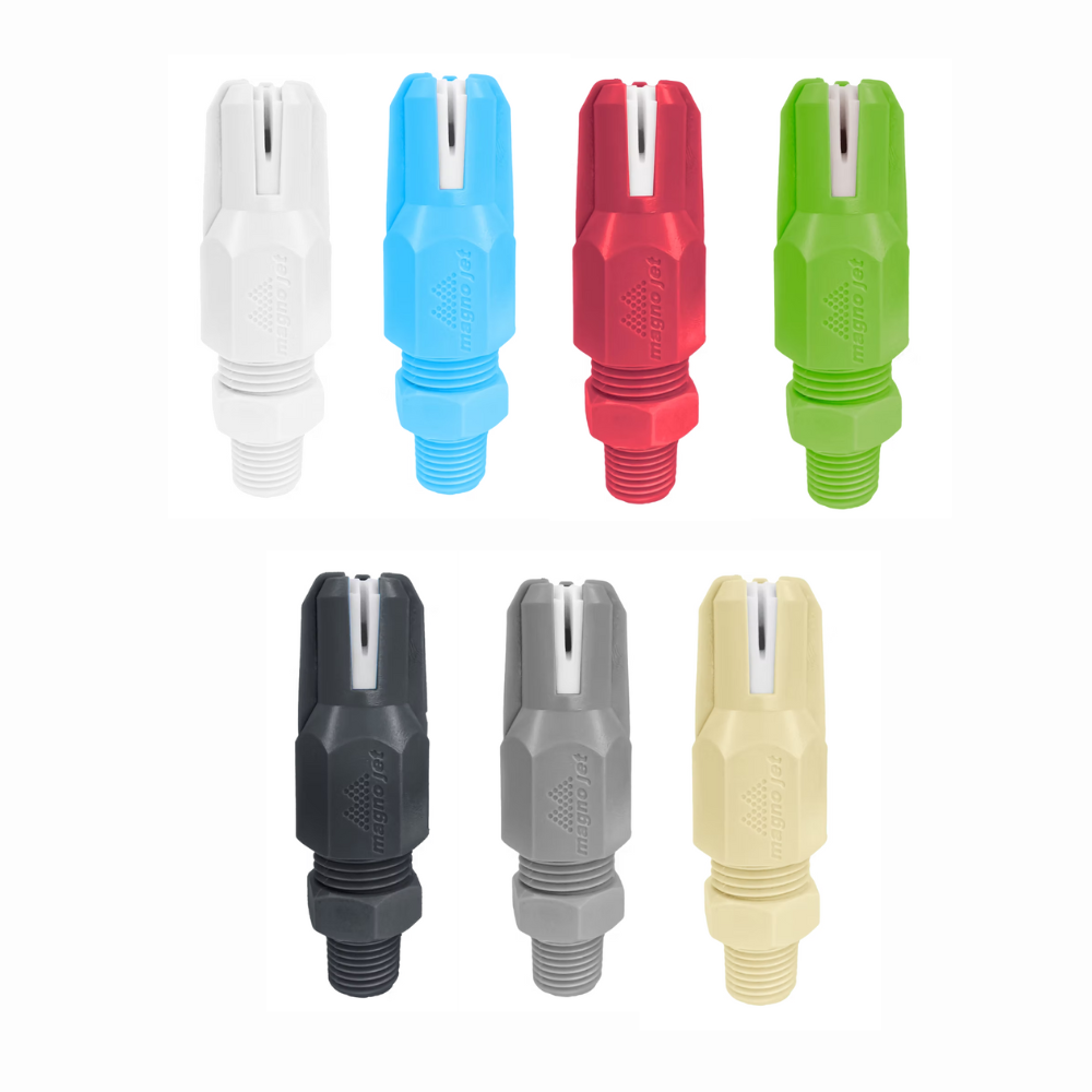 A ponta MJE Magnojet (Magno Jato Estendido) foi desenvolvida especialmente para aplicações de herbicidas sistêmicos em pré e pós-emergência, oferecendo alcance ampliado e excelente uniformidade de distribuição.