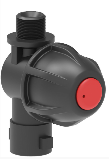 Válvula de retenção com diafragma, evitando gotejamento e garantindo aplicação uniforme.